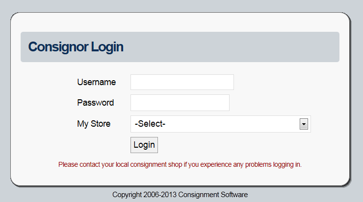 - Go to http://myconsignorlogin.com/account/login.php. The following image represents this page.